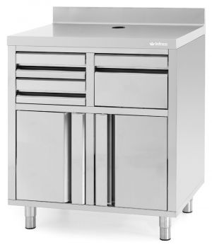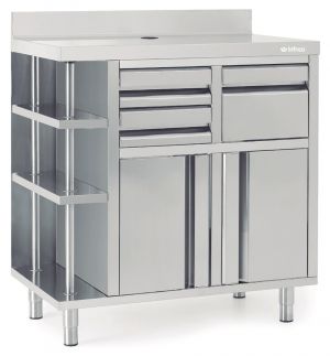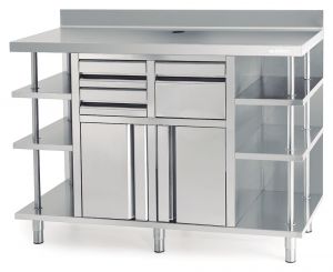 Adjustable legs, double doors and a solid worktop make these a great unit for your coffee-making processes.