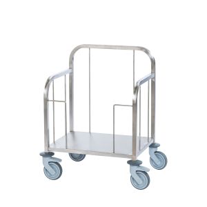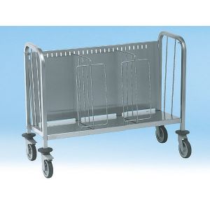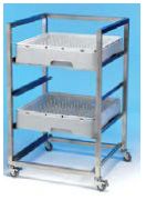 Separate tray trolleys can accommodate a range of tray sizes and shapes, with multiple shelving units for added safe storage.
